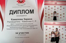 Ученица 3-го класса Камалова Зарина приняла участие в XII республиканском конкурсе "Путешествие к истокам" и награждена Дипломом в номинации "Лучшая видео-экскурсия". Молодец! Желаем дальнейших успехов!