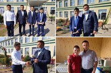 Также Талгат Рифгатович поблагодарил тех учеников нашей школы, которые работали в колхозе во время летних каникул и вручил им денежный подарок.Среди гостей, поздравивших первоклассников, были глава местного сельского совета Хаматвалиев Илдар Калимуллович и имам-хатыйб Фасахов Рамис Садерттинович.