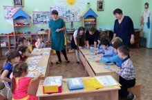 Бүген башлангыч сыйныф укучылары мәктәпкәчә яшьтәге балалар төркемендә кунакта булдылар. Алар кечкенә дуслары белән дидактик уеннарда катнаштылар.