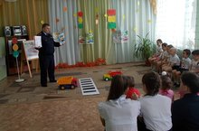 "Ләйсән" балалар бакчасында юл йөрү куркынычсызлыгы атналыгы дәвам итә.Бүген безгә кунакка район ЮХДИ хезмәткәре Хусаинов Р.Ж. килде. Ул балаларга юл куркынычсызлыгы кагыйдәләре турында сөйләде