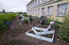 Сегодня учителя и сотрудники школы усердно трудились на благо школы: пропололи клумбы, поливали и удобряли цветы