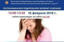 19 января 2017 года в 12 часов состоится третье заседание Республиканского родительского интернет-собрания, посвященное вопросам информационной безопасности детей. Данный проект – совместная инициатива Министерства образования и науки Республики Татарстан и Общественного совета при Министерстве образования и науки Республики Татарстан.