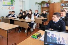 Затем вся школа проследовала в свои классы на Разговоры о важном, где гостем был участник СВО Мигушин ВА. -