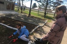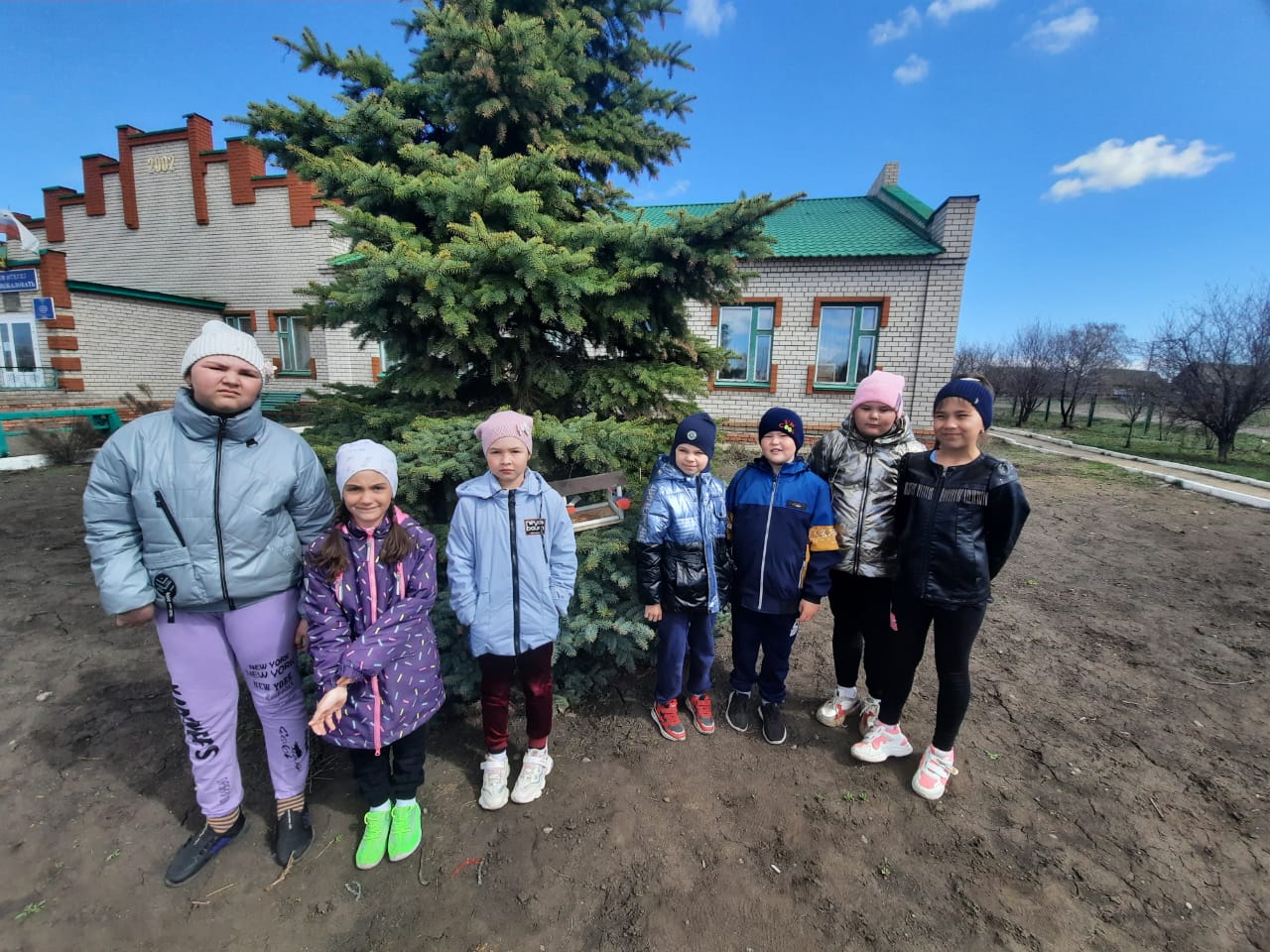 Учащиеся школы в рамках " Вахты памяти " провели субботник у памятника воинам ВОВ в с Сахаровка .