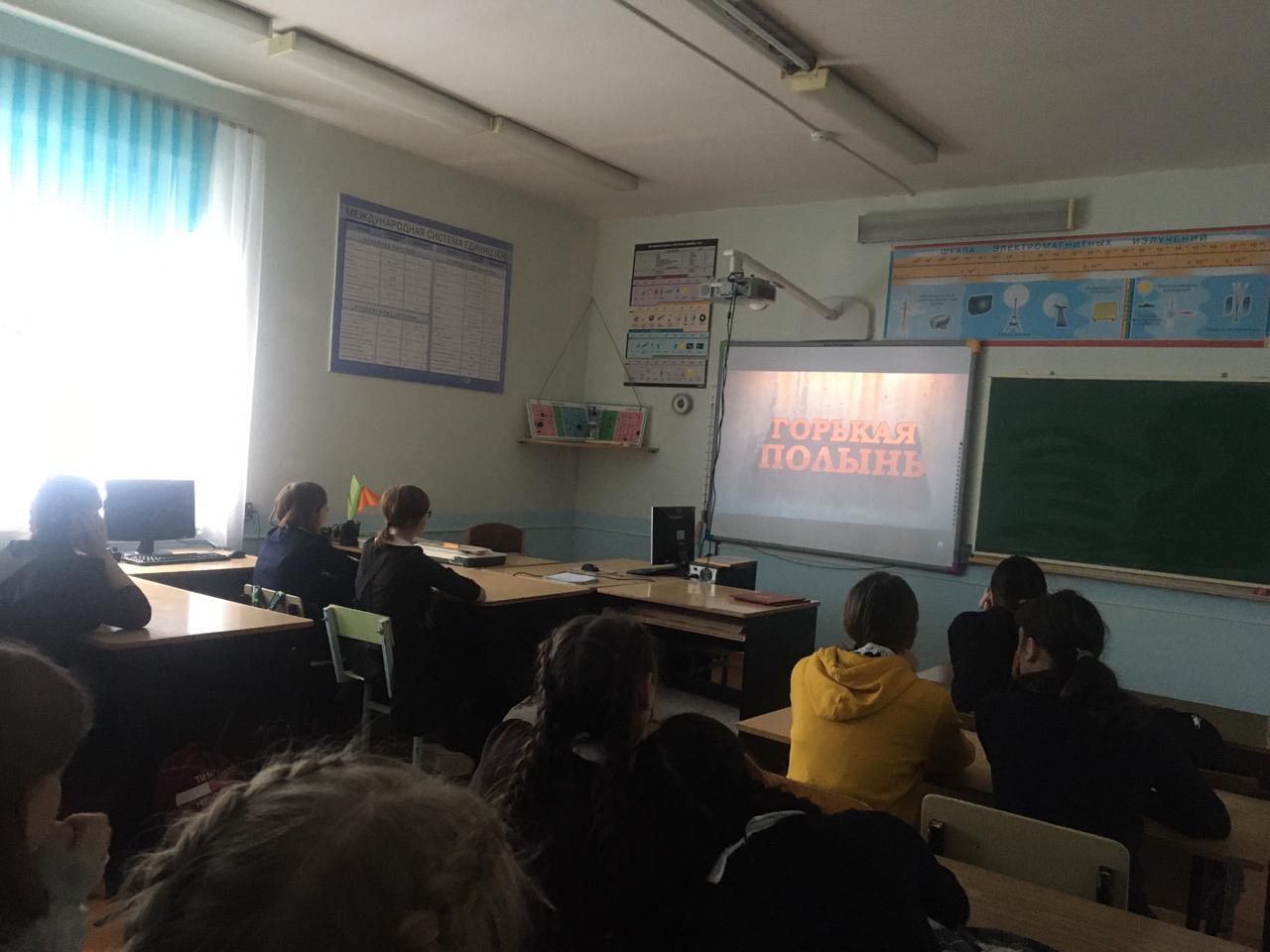 Сегодня прошли классные часы по теме "Трагедия Чернобыля " , "Катастрофа 1986 года..." и тд. Посмотрели фильм "Горькая полынь"