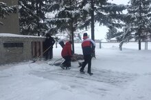 Отряд Юнармии принял участие в акции "Снежный десант" убрав снег на территории школы и у памятника ВОВ.
