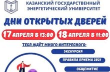 В целях проведения профориентационной работы, популяризации востребованных специальностей и информирования выпускников школ о возможности получения высшего образования в Казанском государственном энергетическом университете 17 апреля в 13.00 и 18 апреля в 11.00 для школьников выпускных классов проводятся Дни открытых дверей в очном формате.