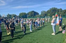Четвертый день пришкольного лагеря "Весёлый лучик" и лагеря труда и отдыха "Радуга" традиционно начался с зажигательной зарядки.