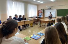 В рамках Дня молодого избирателя, учитель истории и обществознания Трифонова Л.Е провела открытый урок в 8б классе по избирательному праву "Мой голос" с приглашением депутата Иванова В.А.