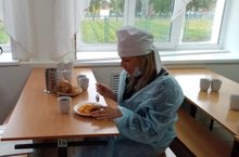 Родители учащихся контролируют организацию школьного питания. Родительница учащегося начальных классов попробовала школьный завтрак, ознакомилась с меню на наделю, присутствовала и наблюдала процесс накрывания завтраков для детей.