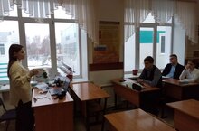 Выступление перед обучающимися 11 класса студентки первого курса КХТИ, Порфирьевой А. с акцией «Десант знаний для школы», разработанной доцентом кафедры физики Садыковой А.Ю., состоящей из лекции по теме: «Химические технологии Турции» и рассказе о деятельности Института нефти, химии и нанотехнологий с использованием электронной презентации.
