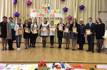 Нашу школу представляла заместитель министра культуры ДО «Республика Алексята», активистка РДШ, участница проекта «СМС-дети»- Егорова А. В конкурсе её сопровождала группа поддержки: президент ДО «Республика Алексята» и активистка РДШ Тукаева В. и активистка школы и РДШ Малышкина А.