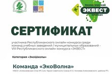 Экологический отряд «ЭкоВолна» стала активным участником Республиканского конкурса «ЭКВЕСТ 2024» . Конкурс проводился с 1 апреля 2024 года по 5 мая 2024 года. Ребята окунулись в мир экологических действий: провели экологические занятия, акции, субботники, квесты и фотовыставки. ЭКВЕСТ» – это настоящее путешествие в мир экологии, которое в течение восьми лет объединяет детей и молодежь с разных уголков Татарстана. В рамках конкурса участники дистанционно получали задания по проведению экологических и природоохранных мероприятий: акций, занятий по экологии, командообразующих и социально-ориентированных мероприятий. Ребята достойно прошли все испытания и получили сертификат за активное участие.