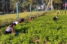 Последние дни августа ученики школы проводят на пришкольном учебно-опытном участке. Ребята поливают цветники, проводят прополку моркови и свеклы.