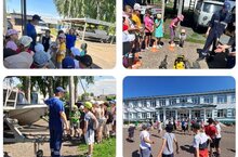 День начался с энергичной зарядки. Ребята сегодня посетили подразделение МЧС.