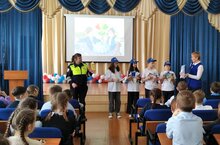 В актовом зале школы ребята из отряда ЮИД (в рамках 50-летия образования отрядов ЮИД) для учащихся 3-4 классов показали агитбригаду по ПДД. На мероприятии присутствовали инспекторы ГИБДД. ЮИДовцы напомнили младшим школьникам правила дорожного движения и посоветовали беречь себя и своих близких!