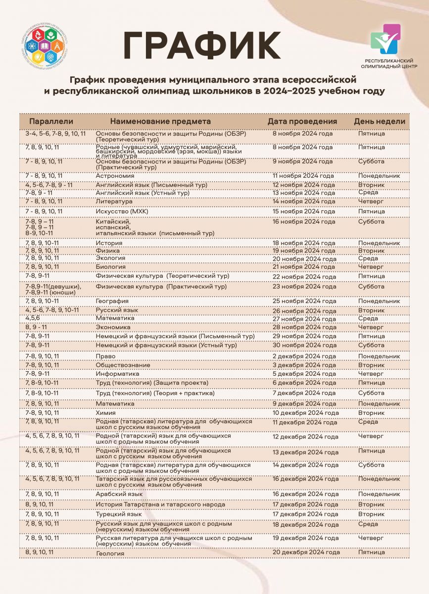 Всероссийские,Региональные и Международные предметные олимпиады 2024-2025 учебного года \ 2024-2025 нче уку елында Бөтенроссия,Региональ һәм Халыкара предмет олимпиадалары