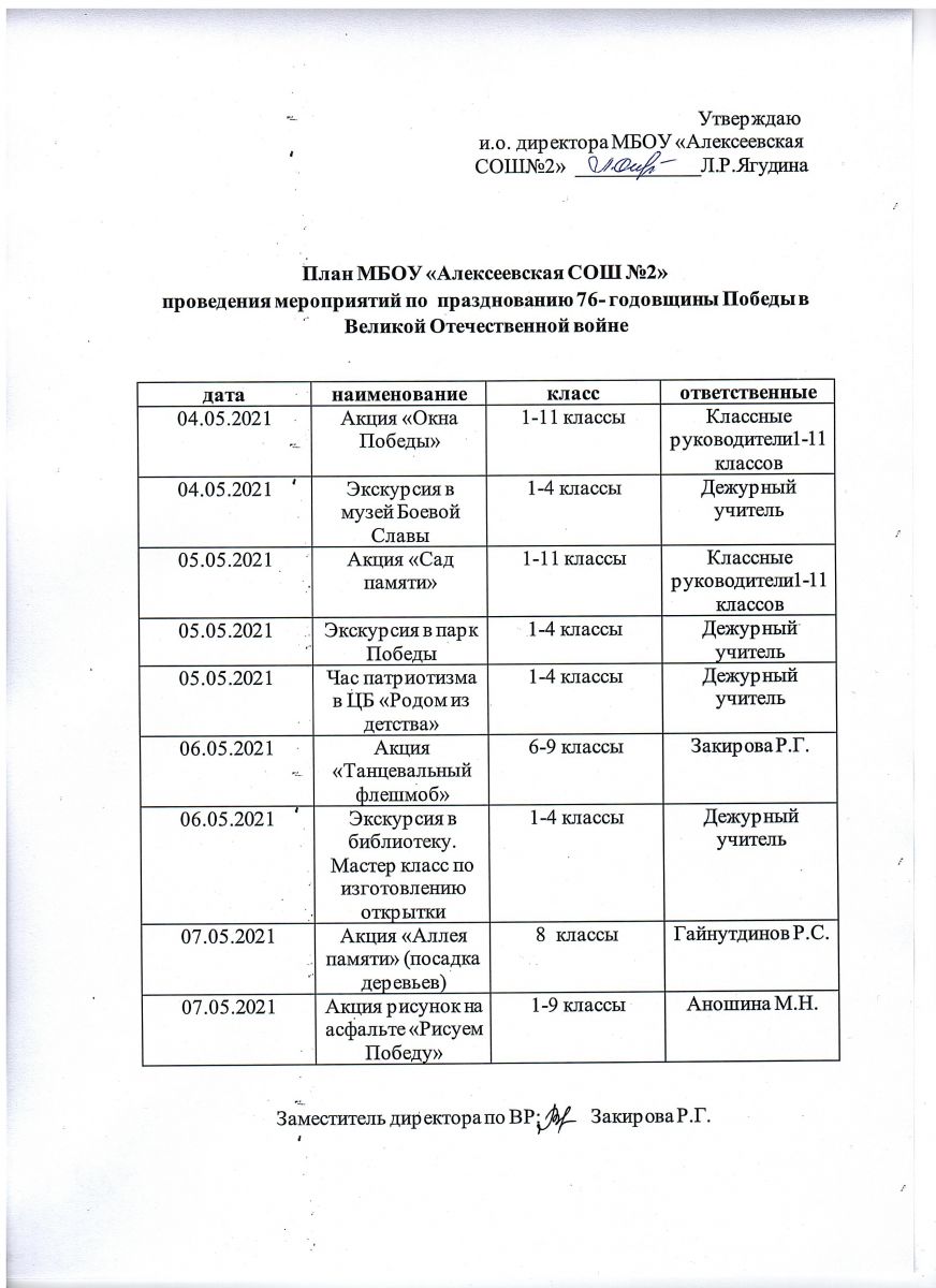 План проведения мероприятий по празднованию 76-годовщины Победы в Великой Отечественной войне\Бөек Ватан сугышында Җиңүнең 76 еллыгын бәйрәм итү буенча чаралар планы