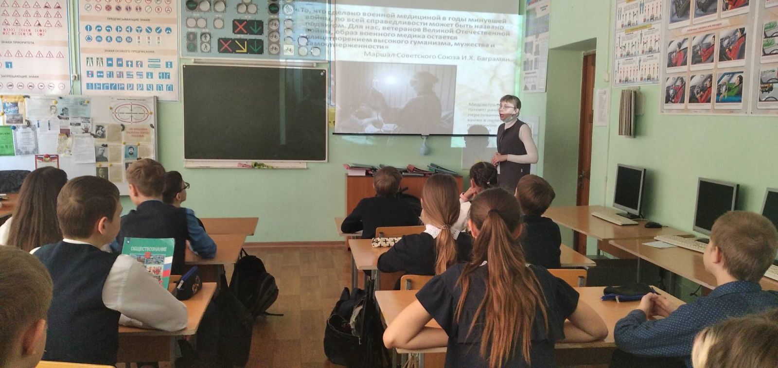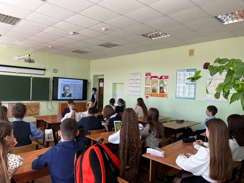 Җиңү көнен бәйрәм итү алдыннан мәктәптә "хәрби табиблар" , "хәрби корреспондентлар", "Пионерлар - геройлар"дигән темага сыйныф сәгатьләре узды. Педагоглар һәм укучылар яраланган солдатларны дәвалаган, туганнарына һәм якыннарына, тынычлык һәм киләчәк буыннарга тормыш саклау өчен башларын салган яшь малайлар һәм кызлар турында сөйләделәр.