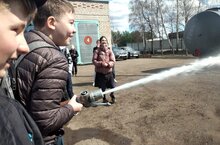 В ходе урока дети научились пользоваться огнетушителем, одевать правильно противогаз, защитный костюм . -