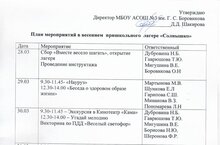 План мероприятий весеннего пришкольного лагеря "Солнышко" с дневным пребыванием 28.03.2022