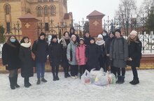 Сегодня учащиеся 6б и 10 а класса под руководством классных руководителей Соколовой Н.Г. и Ибрагимовой Р.С. передали материальную помощь беженцам из Донбасса в храм на соборной площади