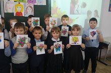 Сегодня в рамках декады, посвященной Дню Матери 2 Б класс подготовил открытки с поздравлениями и портреты мам.