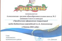 Алексеевская средняя общеобразовательная школа №3 им. Г.С.Боровикова заняла 1 место в конкурсе «Праздничное оформление территорий среди бюджетных учреждений п.г.т. Алексеевское к Новому 2021 году».