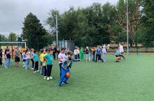 Сегодня в пришкольном лагере «Солнышко» в честь дня физкультурника Файзуллин Н.Ф. и ребята из пришкольного лагеря труда и отдыха "Импульс" провëли спортивную эстафету. Разделившись на 2 команды, ребята соревновались в скорости, ловкости и силе командного духа.