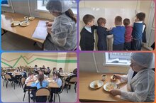 В школе была проведена проверка качества питания учащихся. Меню соответствует приготовленному блюду, температурный режим в норме. В столовой чисто, замечаний нет./Мәктәп ашханәсендә укучыларның туклану сыйфаты тикшерелде. Меню әзерләнгән ризыкка туры килә, температура режимы нормада. Ашханәдә чиста, бернинди дә искәрмәләр юк.