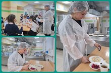 В рамках родительского контроля школьной столовой родительница от 4 класса Егорова Р.Р. проверила процесс питания детей и качество приготовленных блюд. В столовой чисто и уютно, меню соответствует приготовленному блюду. Все вкусно, в меру горячее. Дети с удовольствием кушают, замечаний нет./Ата-аналар контроле кысаларында бүген мәктәп ашханәсендә 4 сыйныф укучысы әнисе Егорова Р.Р. балаларның туклану процессын һәм әзерләнгән ризыкларның сыйфатын тикшерде. Ашханәдә чиста һәм уңайлы, меню пешкән ризыкка туры килә. Барысы да тәмле, уртача кайнар. Балалар рәхәтләнеп ашыйлар, кисәтүләр юк.