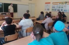 / 14 май көнне безнең мәктәп коллективы алдында Чистай, Спас, Алексеевск, Яңа Чишмә районнарында кулланучылар хокукларын яклау һәм кеше иминлеге өлкәсендә күзәтчелек буенча федераль хезмәтнең Татарстан Республикасы буенча идарәсенең территориаль бүлеге начальнигы урынбасары Р.Р. Хөснетдинов чыгыш ясады.