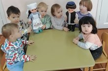На занятии по развитию речи "Оденем куклу Алсу в национальный костюм" малыши группы раннего возраста совместно с воспитателем Барминой А. В. рассматривали предметы одежды куклы, старались запомнить названия предметов одежды, упражнялись в одевании одежды на куклу.Целью данного занятия является знакомство детей с культурой татарского народа ;Воспитывать гуманные отношения к людям всех национальностей.