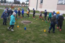Дети старшей группы на прогулке играли в подвижную игру «Возьми скорей», где показали ловкость и внимание.