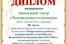 Поздравляем наш школьный театр «Театральные ступеньки»! В районном конкурсе школьных театральных коллективов «Театральная ступенька» они заняли третье место! Желаем им дальнейших успехов и процветания!