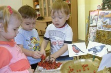 Занятие по художественному творчеству "Ягоды для птиц" в первой младшей группе 13.12.2013