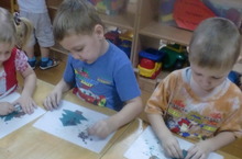 Цель: продолжать учить работать с пластилином, раскрашивать пластилином и украшать шаблоны крупами, развивать у детей мелкую моторику рук, восприятие цвета, фантазию.