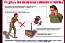 Не предпринимайте самостоятельных действий с находками или подозрительными предметами, которые могут оказаться взрывными устройствами- это может привести к их взрыву, многочисленным жертвам разрушениям.