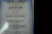 13 ноября воспитатель татарского языка школы-детского сада Асфандиярова Р.Р. участвовала во Всероссийской педагогической видеоконференции по теме: Психологи-педагогические требования к квалификации учителя. Коммуникативные отношения".