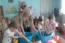 В субботу в старшей - подготовительной группе под руководством воспитателя Харитоновой И.Л. прошел субботник. Дети мыли игрушки.