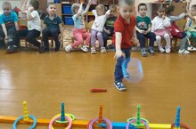 Сегодня вместе с детьми мы пробовали играть в «Кольцеброс». Конечно, с первого раза не у кого не получилось, накинуть кольцо на колышек, но после усердных тренировок и попыток у детей получилось. И столько было восторгов и эмоций у детей, когда кольцо попадало на колышек.Такая игра позволяет развивать у детей глазомер, равновесие, мышечную силу рук, умение следовать правилам игры и ориентироваться в пространстве.