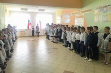 Вторая неделя учебы началась с линейки с поднятием флагов и торжественного исполнения гимнов РФ и РТ всей школой.