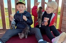 Ребята подготовительной группы во время прогулки по парку Дорожник нашли бездомных котят и взяли их под свою опеку. Теперь юные зоозащитники приходят каждый день в парк для того, чтобы покормить своих новых друзей./Мәктәпкә әзерлек төркеме балалары "Юлчы паркында" ял иткәндә йортсыз песиләрне тапканнар, хәзер көн саен яңа дусларын ашатырга киләләр.