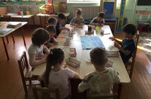 Дети старшей группы очень любят вырезать и наклеивать разные фигуры. На занятии аппликация воспитанники выполнили коллективную работу - наклеили красивых рыбок в аквариум. Дети получили от занятий море имоции./Олы төркем балалары кәгазьдән төрле фигураларны кисәргә һәм ябыштырырга яраталар. Ябыштыру дәресендә балалар аквариум ясап, балыклар кисеп ябыштырдылар.