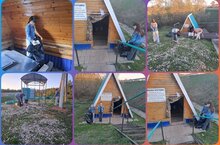 Дети старшей группы в рамках акции "Эко весна 2024" совместно с родителями приображают придомовую территорию./Өлкән төркем балалары "Эко яз 2024" акциясе кысаларында әти-әниләре белән берлектә йорт яны территорияләрен җыештыралар. 26.04.2024