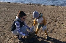 Өлкән төркем балалары әти-әниләре белән бергә Кама елгасы яр буен төзекләндерү белән мәшгуль.