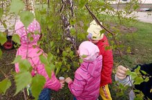 С детьми старшей группы была проведена беседа "Эколята". Они узнали об эколятах, что они помощники природы, заботятся и оберегают ее. После беседы дети в очередной раз расмотрели как из почек берёзы появились маленькие листочки, сережки. Закрепили знания, что деревья это лёгкие планеты, которые поглащают углекислый газ и выделяют кислород. И их нужно беречь. Так же дети не забывают ухаживать за рассадой цветов./Өлкән төркем балалары белән "Эколята" әңгәмәсе үткәрелде. Алар эколятлар табигатьнең ярдәмчеләре икәнен белделәр. Әңгәмәдән соң балалар каен бөреләреннән алкаларның ничек барлыкка килүен карадылар.