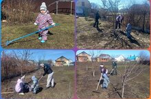 Продолжается субботник в рамках акции "Эко весна 2024". Дети старшей группы совместно с воспитателем наводят чистоту на своём участке./"Эковесна 2024" акциясе кысаларында өмә дәвам итә. Өлкән төркем балалары тәрбияче белән бергә үз мәйдәнчыкларында чисталык урнаштыралар.