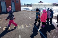 Дети старшей группы во время прогулки закрепили знания ПДД./Өлкән төркем балалары юл хәрәкәте кагыйдәләре буенча белемнәрен ныгыттылар. 29.03.2024