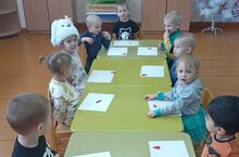 Весёлый зайчик прибегал в гости к ребятам младшей группы. Он с ними поиграл в игру, рассказал о жизни в лесу. Дети слепили много морковок и угостили зайчика любимым лакомством./Шук, шаян куян кече төркем балаларына кунакка килде. Ул алар белән уен уйнады, урман тормышы турында сөйләде.